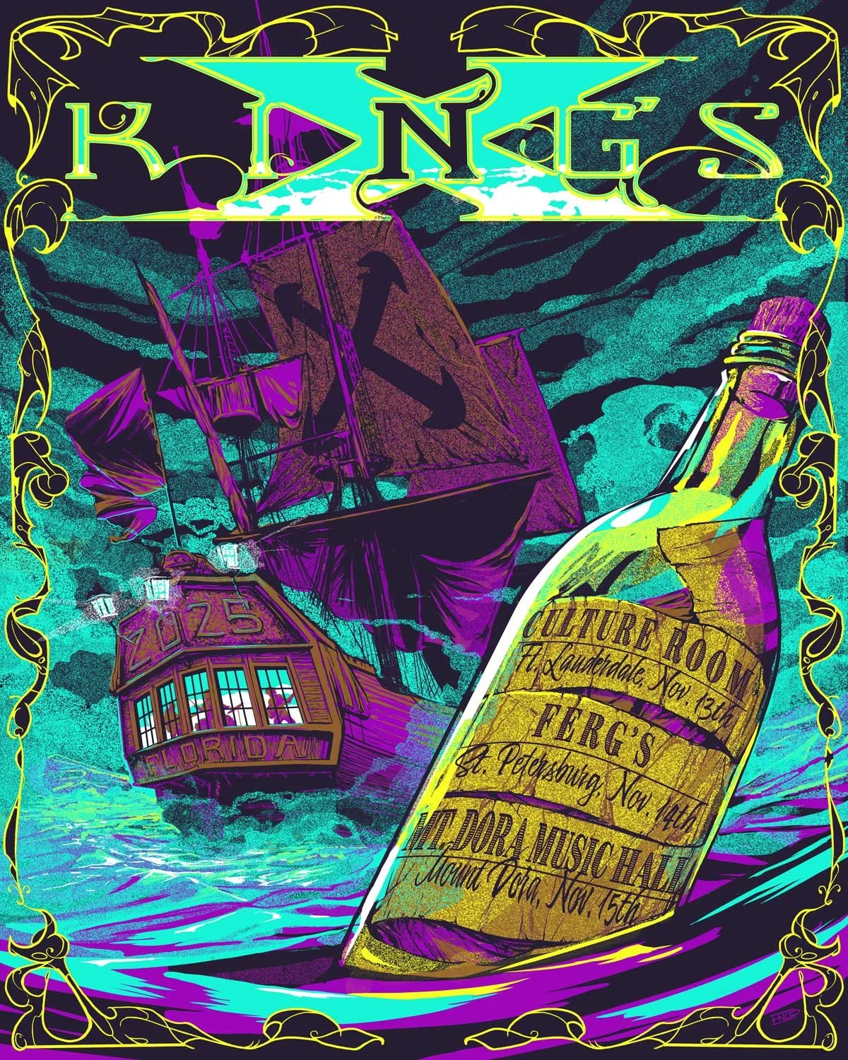 If you had told my teenage self that one day my favorite band would ask me to design their album art, show posters, and apparel, I wouldn't have believed it. Yet, here we are! What started as a single t-shirt design for King’s X quickly evolved into much more. I collaborated with the band, their management, and Sony Music to create the cover art for their latest album, Three Sides of One. I also designed a five-color screen print poster for regional shows. Now, whenever I attend a King’s X concert, I see my work proudly displayed at their merch table—a surreal and rewarding experience.